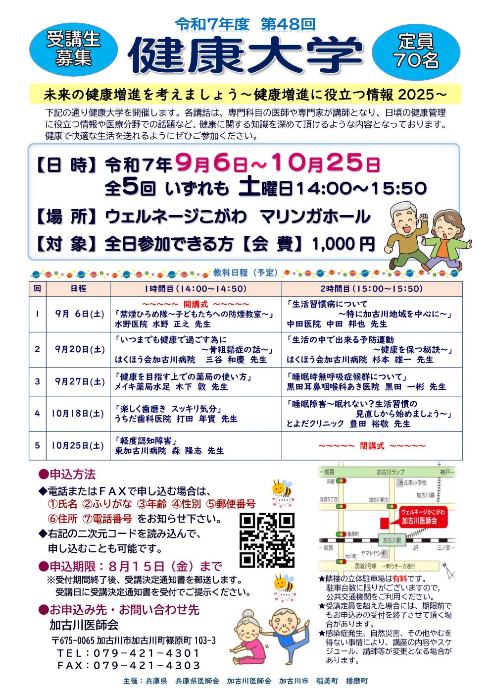 「第48回 兵庫県健康大学加古川講座」受講生の募集について 【2025年度】